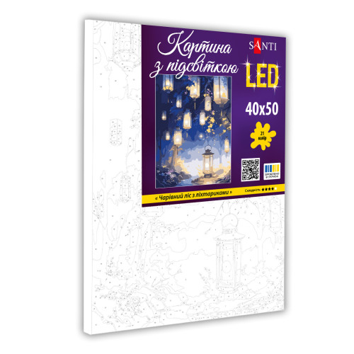 Теги: Картина по номерам с LED подсветкой SANTI Волшебный лес с фонариками, 40x50см