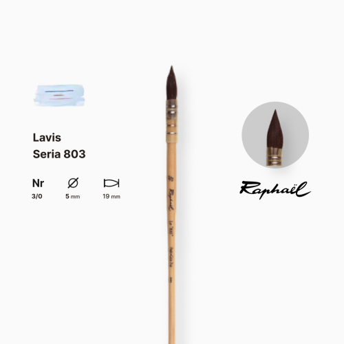 Микро-кисть высшего класса Raphaël 803 Lavis, чистая сибирская белка №3/0 — ювелирный инструмент для сверхтонкой детализации, подписей, мельчайших линий и ботанической акварели.