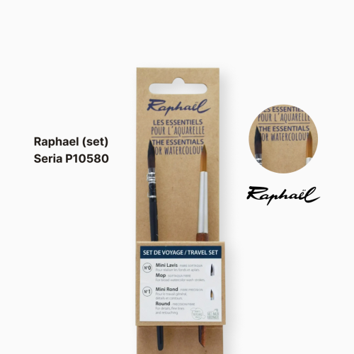 Компактный премиальный дорожный набор Raphaël Travel Set, 2 круглые кисти — идеальный спутник акварелиста на пленэре, в путешествиях и городских зарисовках.