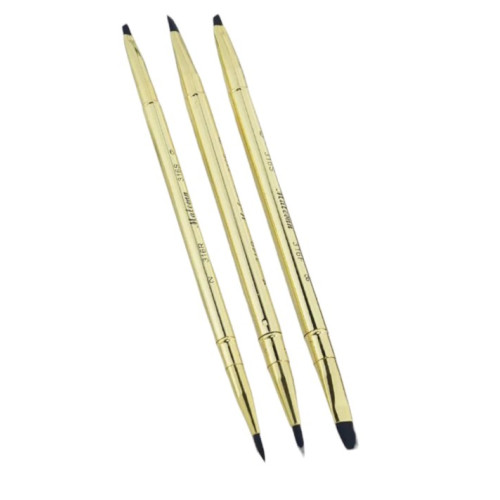 Всего 6 кистей = 12 рабочих наконечников. Комбинация круглых, плоских и скошенных форм позволяет переключаться между заливками, деталями и графическими линиями без смены инструмента.