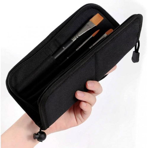 Универсальный пенал из прочной ткани имеет индивидуальные отделения для каждой кисти. Это обеспечивает аккуратное хранение, защиту ворса от деформации и комфортную транспортировку. Набор кистей в пенале удобно брать на обучение, пленэры или художественные занятия.