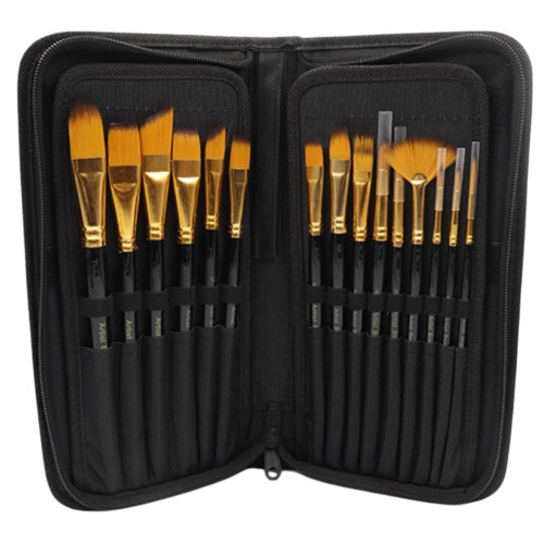 Набор художественных кистей 15 шт, синтетика в универсальном пенале
