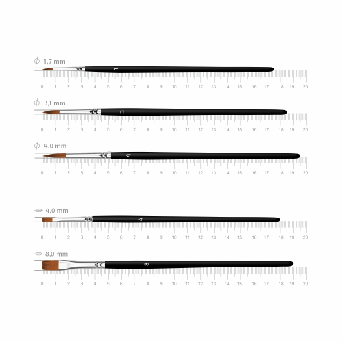 Набор Arteo №4 — отличный выбор для художников, иллюстраторов и творческих энтузиастов, ценящих универсальность и контроль мазка.
