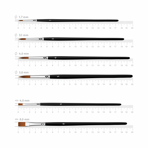 Набор Arteo №5 — отличный выбор для художников, иллюстраторов и творческих энтузиастов, ценящих универсальность и контроль мазка.