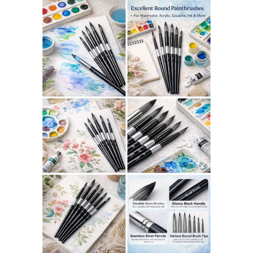 Кисти WORISON круглые идеально подходят для акварели, акрила, гуаши, темперы и других водных техник. Они универсальны для портретов, пейзажей, иллюстраций, ботаники, скетчинга и декоративной росписи. Подходят как для начинающих (учёба, школа, кружки), так и для опытных художников, которые ищут качественный синтетический инструмент по доступной цене.