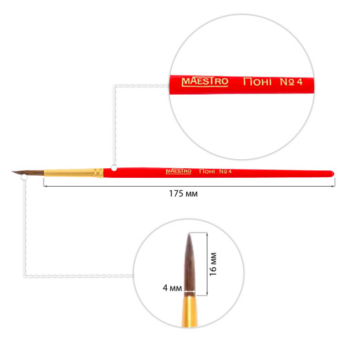 Предназначена для художественного творчества. Кисти этого вида используются для работы с акварельными и гуашевыми красками. После использования необходимо удалить остатки краски, тщательно промыв кисть проточной водой. Материал ручки: натуральная древесина. Материал гильзы: алюминий. Материал кисти: высококачественный ворс.