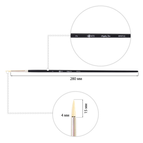 Теги: Кисть щетина Santi Highly Pro, длинная ручка, круглая, №2