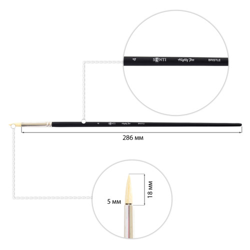 Теги: Кисть щетина Santi Highly Pro, длинная ручка, круглая, №4