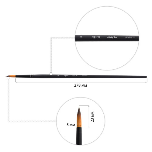 Теги: Кисть синтетика Santi Highly Pro, длинная ручка, круглая, №4