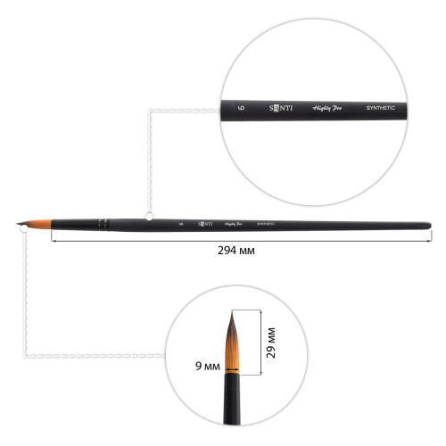 Теги: Кисть синтетика Santi Highly Pro, длинная ручка, круглая, №6