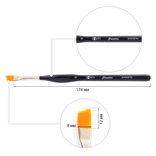 Теги: Кисть синтетика Santi Sensation, короткая ручка с изгибом, угловая, №6