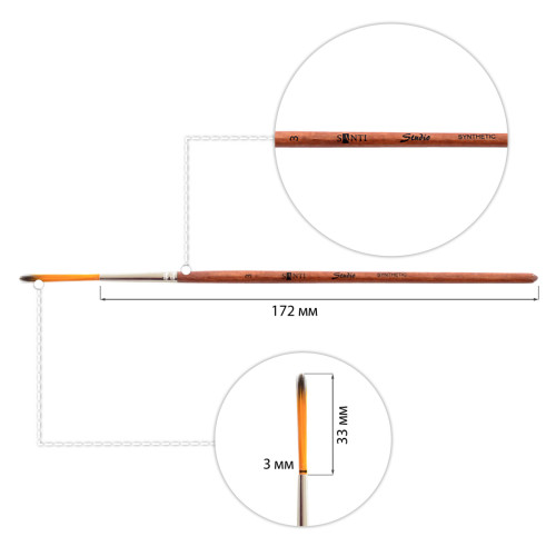 Теги: Кисть синтетика Santi Studio, короткая ручка, лайнер, №3