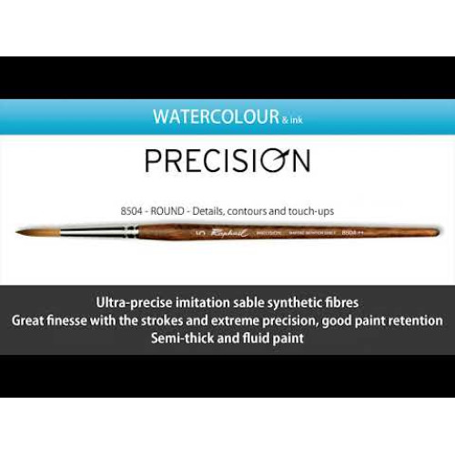 Профессиональная синтетическая кисть Raphaël Precision Synthetic Sable (серия 8404) — высококачественная имитация натурального колонка. Идеальный выбор для акварели, гуаши, акрила и масляной живописи, когда нужна мягкость, упругость и точность без использования натурального волоса.