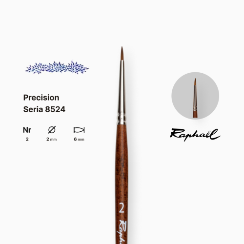 Профессиональная синтетическая кисть Raphaël Precision Synthetic Sable (серия 8404) — высококачественная имитация натурального колонка. Идеальный выбор для акварели, гуаши, акрила и масляной живописи, когда нужна мягкость, упругость и точность без использования натурального волоса.