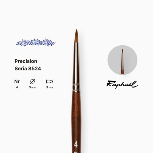 Профессиональная синтетическая кисть Raphaël Precision Synthetic Sable (серия 8404) — высококачественная имитация натурального колонка. Идеальный выбор для акварели, гуаши, акрила и масляной живописи, когда нужна мягкость, упругость и точность без использования натурального волоса.