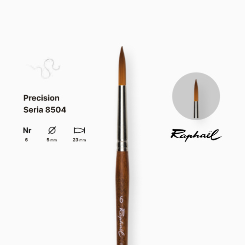 Профессиональная синтетическая кисть Raphaël Precision Synthetic Sable (серия 8404) — высококачественная имитация натурального колонка. Идеальный выбор для акварели, гуаши, акрила и масляной живописи, когда нужна мягкость, упругость и точность без использования натурального волоса.