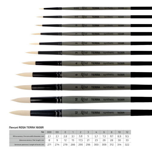 Теги: Кисть Синтетика круглая, TERRA 1608R, №1, длинная ручка ROSA 1608R01