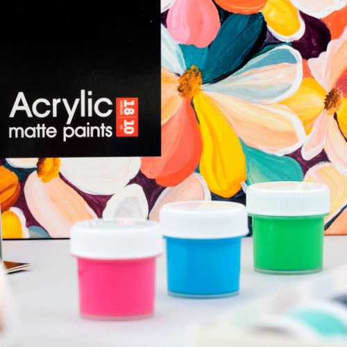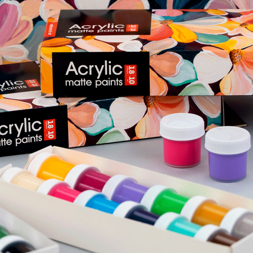 Их густая консистенция обеспечивает равномерное нанесение, а высокая концентрация пигментов — насыщенность цвета. После высыхания краски приобретают элегантное матовое покрытие. Они легко смешиваются между собой, не требуют растворителей и быстро сохнут, что делает процесс творчества комфортным и чистым.