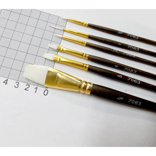 Набор кистей из синтетического ворса серии 7063 оптимально подходит для акриловых красок. Кисти хорошо держат форму, равномерно распределяют краску и подходят как для заливок, так и для детальной проработки элементов.