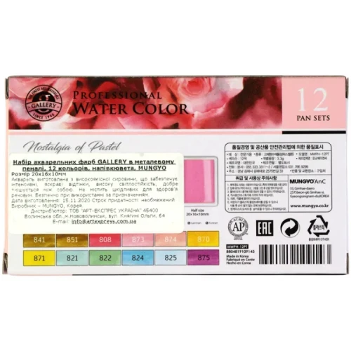 Теги: Набор акварельных красок GALLERY Nostalgia of Pastel, 12 цветов, MUNGYO