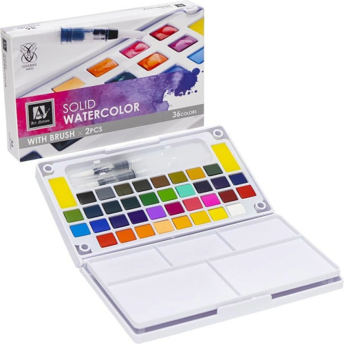Акварельные краски на 36 цветов обеспечивают широкую палитру оттенков. Краски легко смешиваются между собой, позволяя создавать плавные переходы и новые цвета. Такой набор для акварели отлично подходит для изучения акварельной техники и создания художественных работ различной сложности. Кроме 36-ти красок, набор включает в себя дополнительные аква-кисти заправляемые водой + пластиковая палитра для смешивания красок и получения дополнительных цветов и оттенков