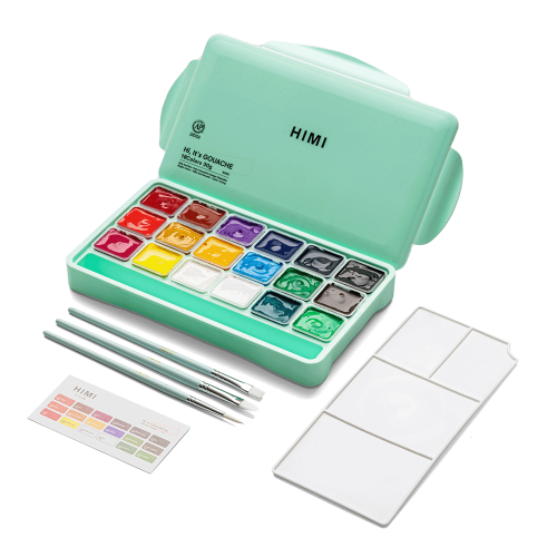 Комплект поставляется в стильном зелёном пластиковом пенале, который надёжно защищает краски и кисти. HIMI Jelly Cup — это яркая, удобная и практичная гуашь, которая станет отличным выбором для творчества и обучения.