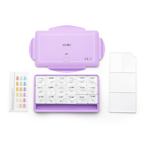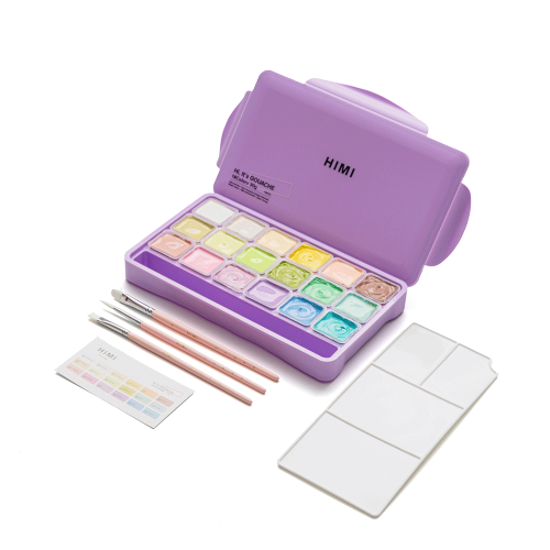 Комплект поставляется в красивом фиолетовом пластиковом пенале, который надёжно защищает краски и кисти. HIMI Jelly Cup пастельные — это удобная, яркая и практичная гуашь для создания атмосферных и утончённых работ.