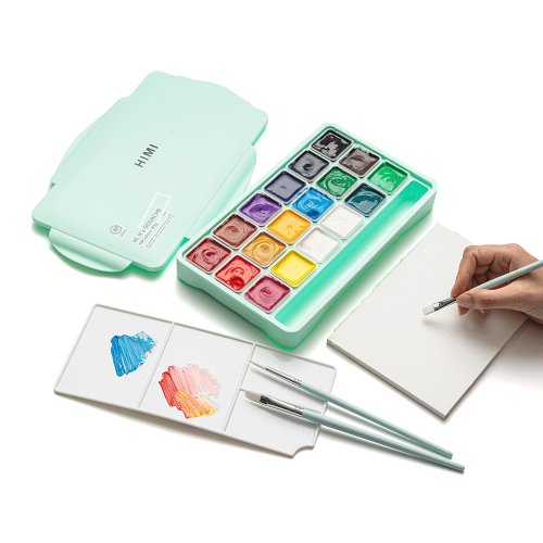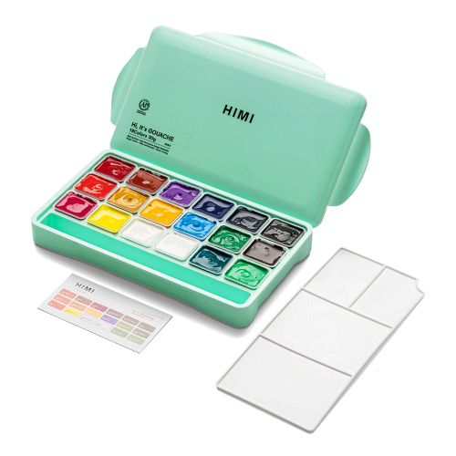 Набор гуашевых красок HIMI Jelly Cup — сочетание профессионального качества, вдохновения и удобства. В прочном зелёном пенале собрано 18 насыщенных цветов желеобразной гуаши, которая легко смешивается, долго сохраняет свежесть и не высыхает в капсулах.