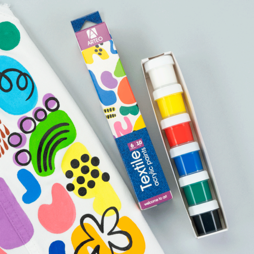 Набор акриловых красок для росписи тканей Colors 6x10 мл Arteo — это вдохновение в каждом тюбике. Закажите в Artkopilka и создавайте яркие текстильные шедевры своими руками!