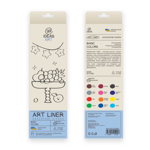 Теги: Набор цветных линеров, 12 цв., 12 set Basic colors, IDEA10-AL12BASIC, 99IDEAS
