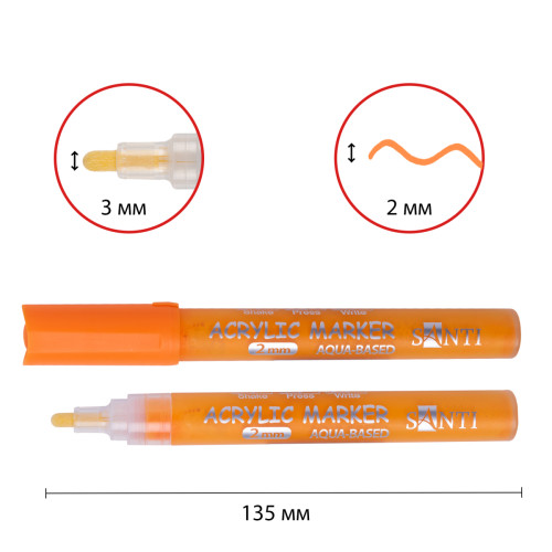 Теги: Маркер акриловый SANTI SAC-03 оранжевый 2 мм