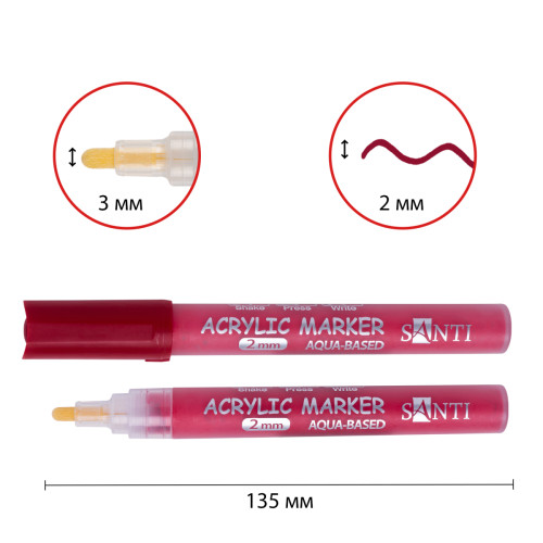Теги: Маркер акриловый SANTI SAC-08 бордовый 2 мм
