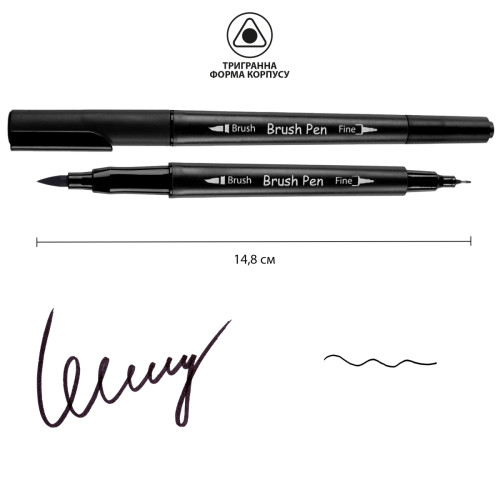Акварельный маркер Черный SW-27, SANTI Brush Pen двусторонний