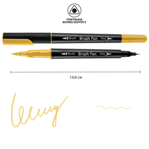 Акварельный маркер Желтый SW-02, SANTI Brush Pen двусторонний