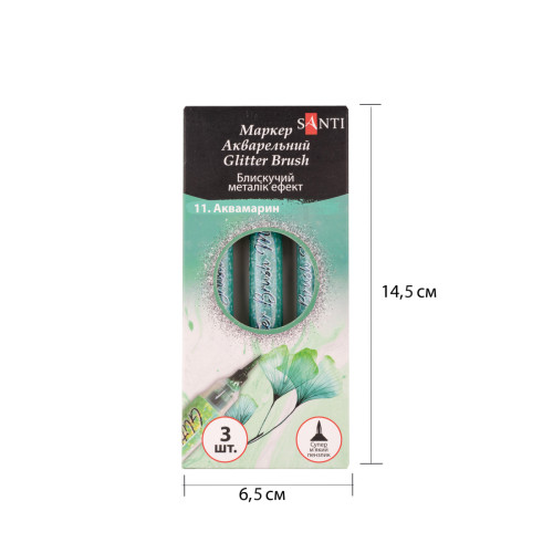 Маркеры акварельные SANTI "Glitter Brush", 3 шт