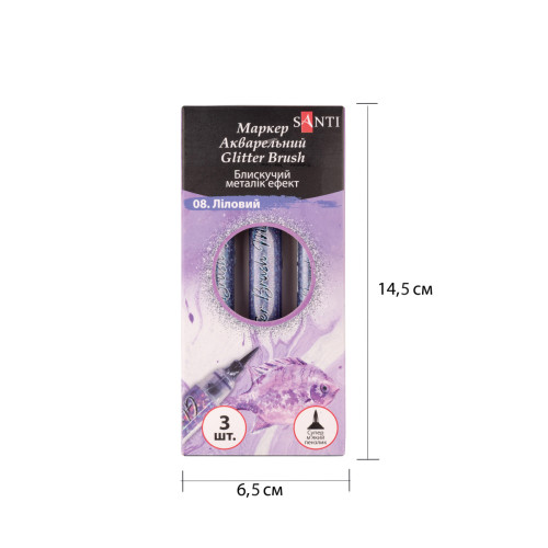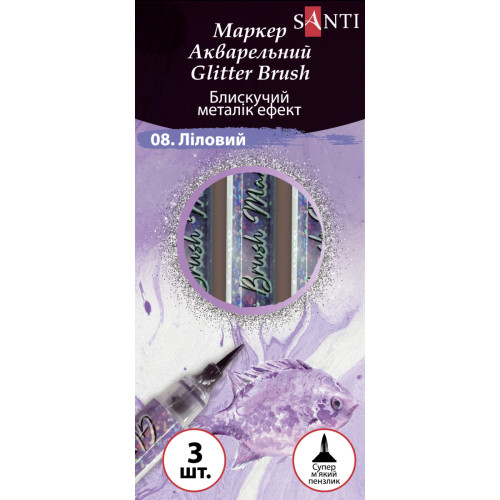 Теги: Маркер-кисть акварельный глиттерный Лиловый 08, SANTI Glitter Brush
