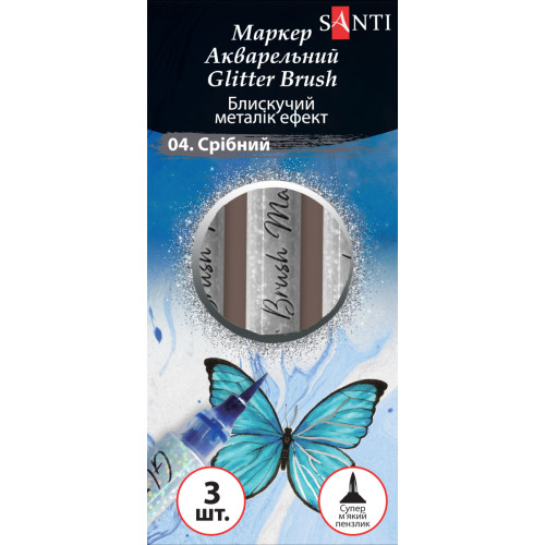 Купить маркеры акварельные SANTI "Glitter Brush", 3 шт на Арткопилка — оригинальная продукция SANTI по лучшим ценам с доставкой в Киев, Львов, Одессу, Днепр, Харьков и любой город Украины.