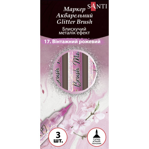 Теги: Маркер-кисть акварельный глиттерный Винтажный розовый 17, SANTI Glitter Brush