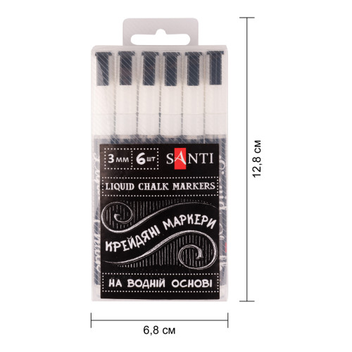 Купить набор меловых маркеров SANTI белый 3 мм 6 шт в коробке на Арткопилка — оригинальная продукция SANTI по лучшим ценам с доставкой в Киев, Львов, Одессу, Днепр, Харьков и любой город Украины.