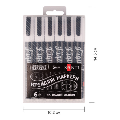 Купить набор меловых маркеров SANTI белый 5 мм 6 шт в коробке на Арткопилка — оригинальная продукция SANTI по лучшим ценам с доставкой в Киев, Львов, Одессу, Днепр, Харьков и любой город Украины.
