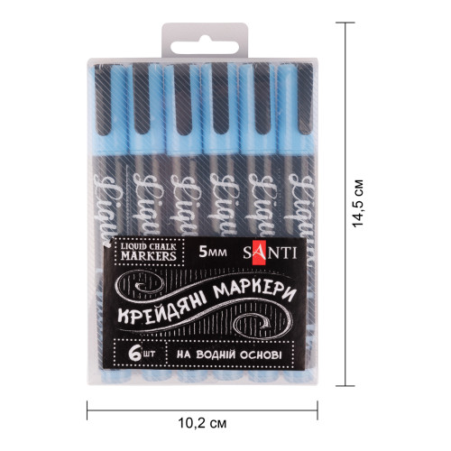 Купить набор меловых маркеров SANTI 5 мм 6 шт в коробке на Арткопилка — оригинальная продукция SANTI по лучшим ценам с доставкой в Киев, Львов, Одессу, Днепр, Харьков и любой город Украины.