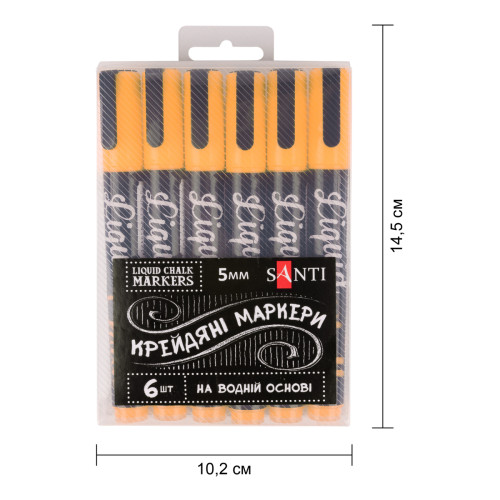 Купить набор меловых маркеров SANTI золото 5 мм 6 шт в коробке на Арткопилка — оригинальная продукция SANTI по лучшим ценам с доставкой в Киев, Львов, Одессу, Днепр, Харьков и любой город Украины.