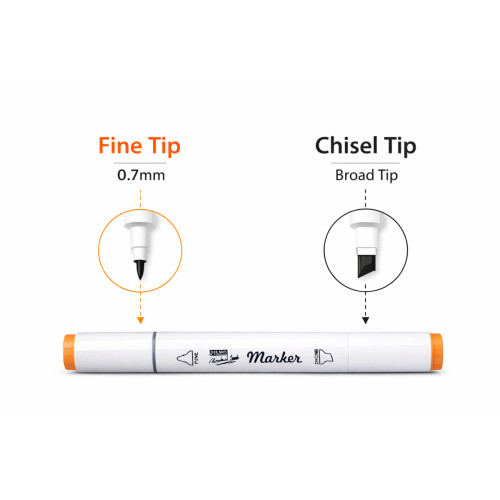 Каждый маркер имеет удобный корпус и двусторонний наконечник, что делает набор универсальным инструментом для различных техник рисования. Один наконечник подходит для создания тонких линий, контуров и мелких деталей, а другой — для быстрого закрашивания больших поверхностей и создания плавных цветовых переходов. Чернила равномерно ложатся на бумагу, обеспечивая яркость и насыщенность цвета.
