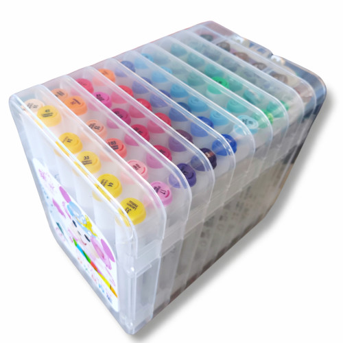 Все маркеры компактно размещены в универсальном пенале, который обеспечивает удобное хранение и транспортировку набора. Такой формат позволяет легко брать маркеры с собой на занятия, в художественную школу или в поездки.