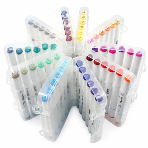 Все маркеры компактно размещены в универсальном пенале, который обеспечивает удобное хранение и транспортировку набора. Такой формат позволяет легко брать маркеры с собой на занятия, в художественную школу или в поездки.