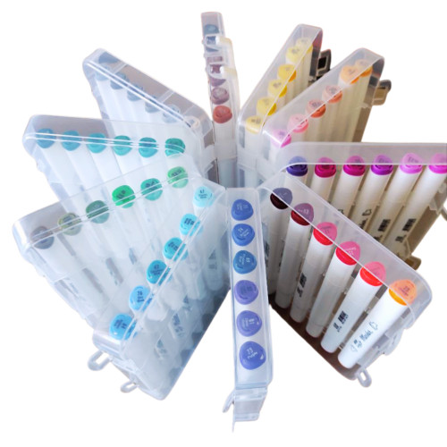 Все маркеры компактно размещены в универсальном пенале, который обеспечивает удобное хранение и транспортировку набора. Такой формат позволяет легко брать маркеры с собой на занятия, в художественную школу или в поездки.