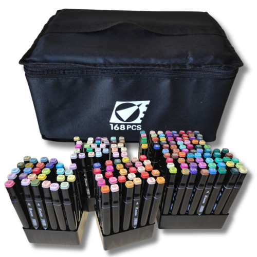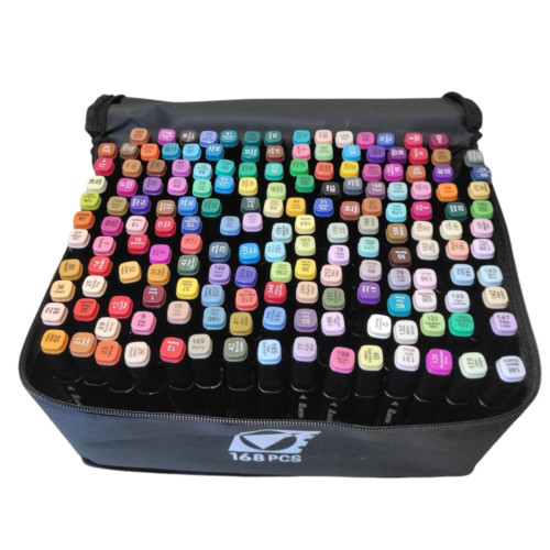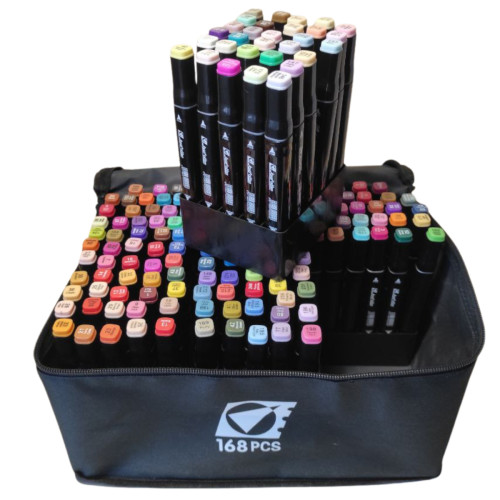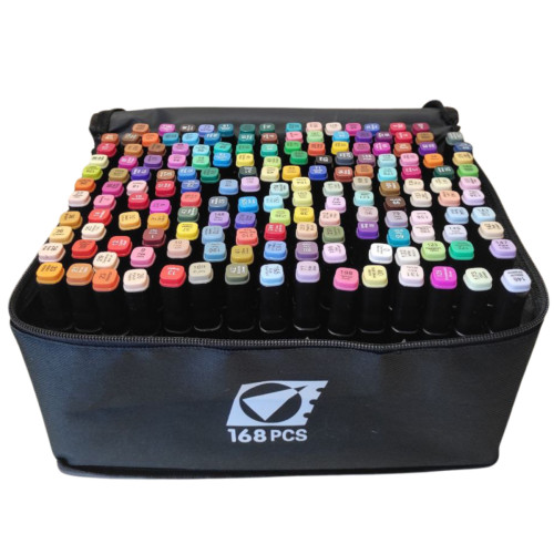 Набор двусторонних маркеров 168 шт станет отличным инструментом для творчества, обучения и профессиональной работы. Большая палитра цветов и универсальные наконечники помогут реализовать любые художественные идеи.