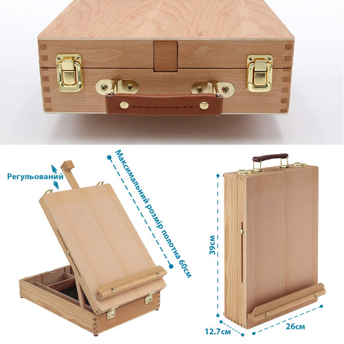 Мольберт легко регулируется по углу наклона, быстро складывается и занимает минимум места при хранении. Прочная конструкция и натуральное дерево делают его устойчивым, долговечным и эстетичным решением для ежедневного творчества.
