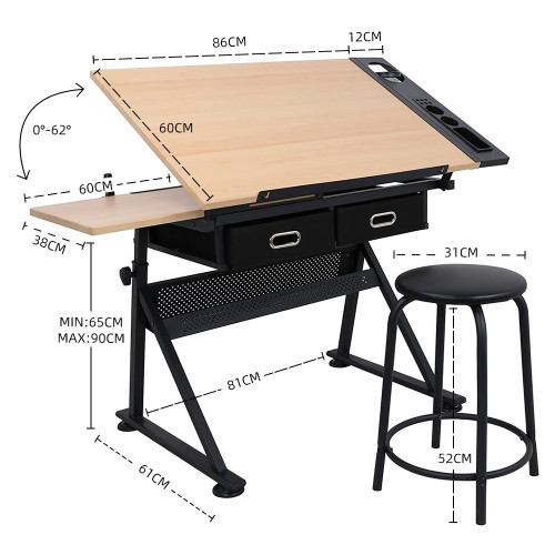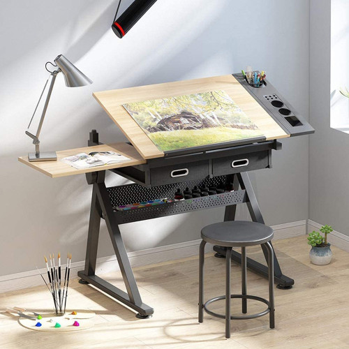 Возможность плавно менять угол наклона позволяет выбрать идеальное положение для черчения, технической графики, иллюстрации или живописи на бумаге, значительно снижая нагрузку на спину и шею. В комплекте удобный стул, что делает набор готовым решением для студии или мастерской.