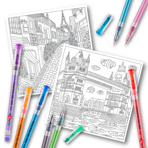 Мітки: Розмальовка-антистрес з гелевими ручками Архітектурні споруди, SANTI
